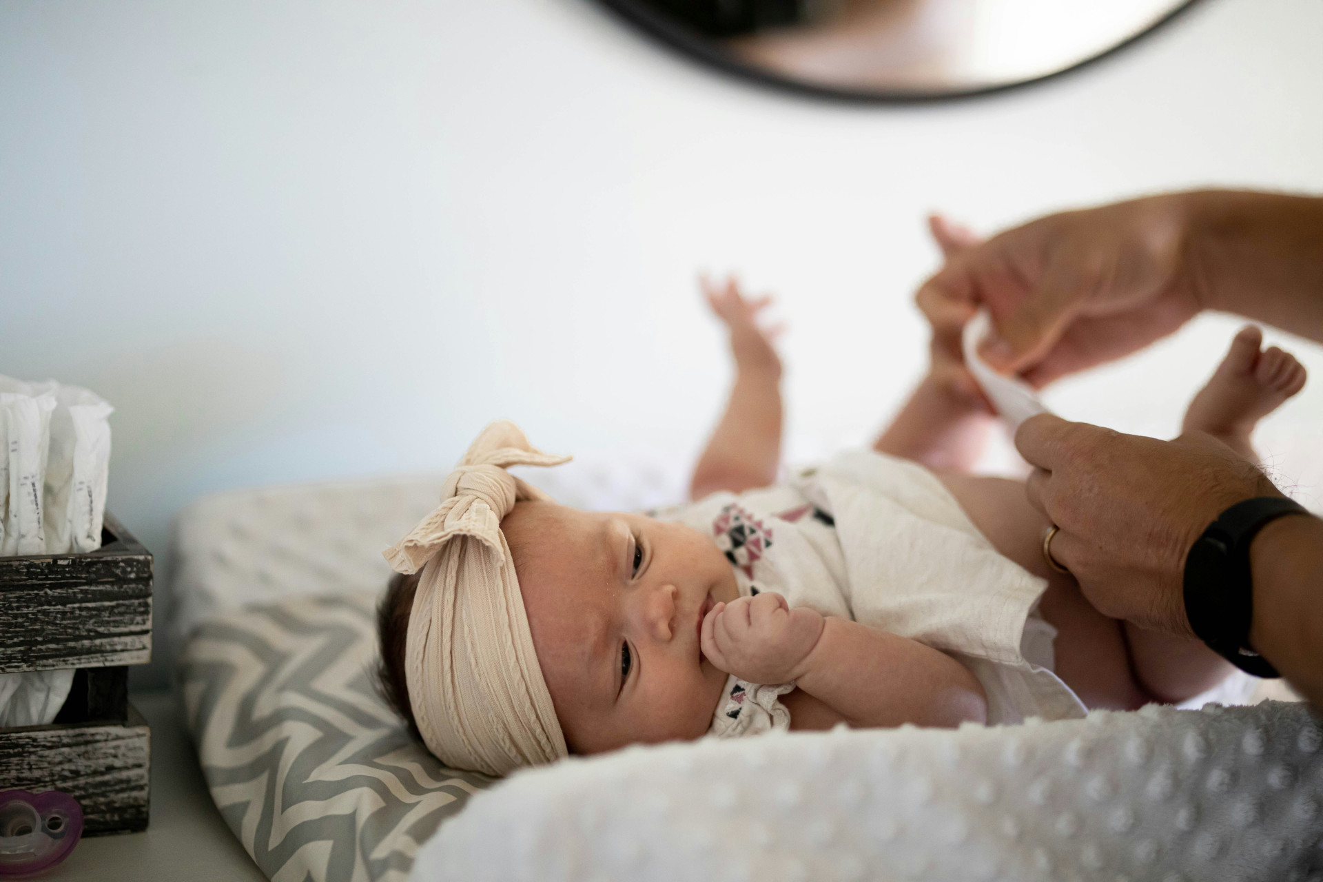 - Rummelig opbevaring: Stor hylde til bleer, tøj og tilbehør.